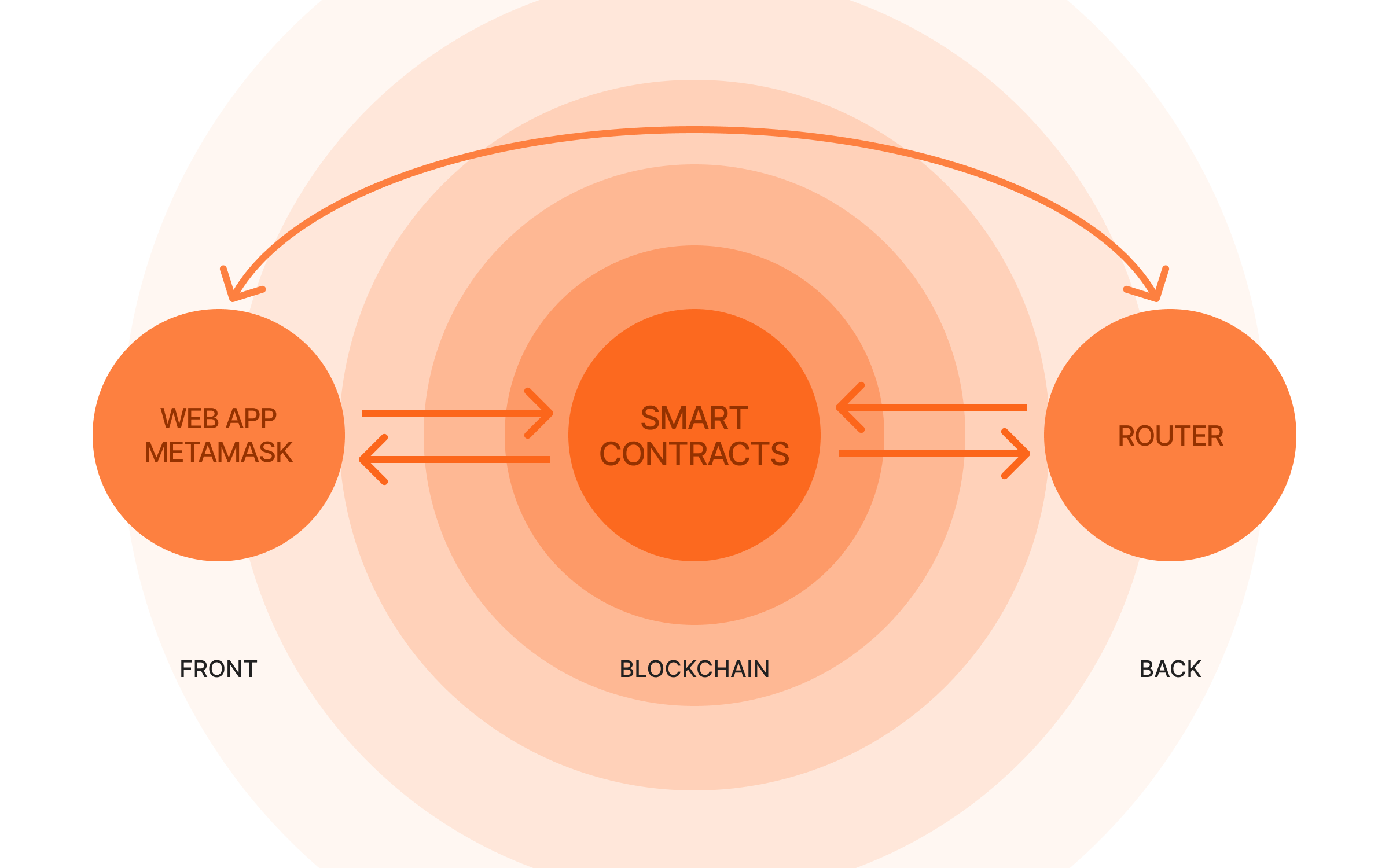 A typical DEX aggregator consists of three major parts: the frontend, smart contracts, and backend.